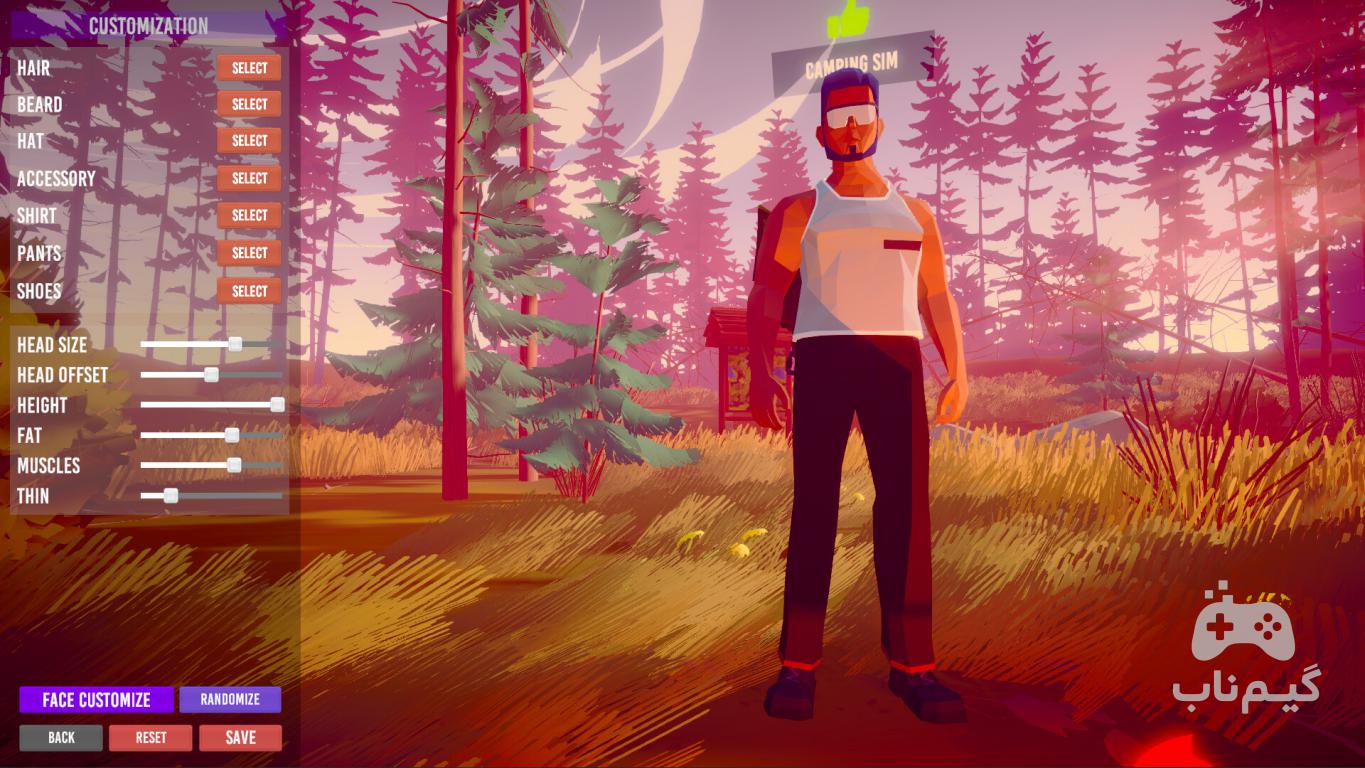 گرافیک بازی سبک واقعگرایانه اما ساده دارد که فضای کمپینگ را به خوبی منتقل میکند. از طلوع خورشید در میان درختان گرفته تا صدای جیرجیرکهای شبانه، همه چیز به شما حس آرامش و تجربه کمپ واقعی را میدهد.